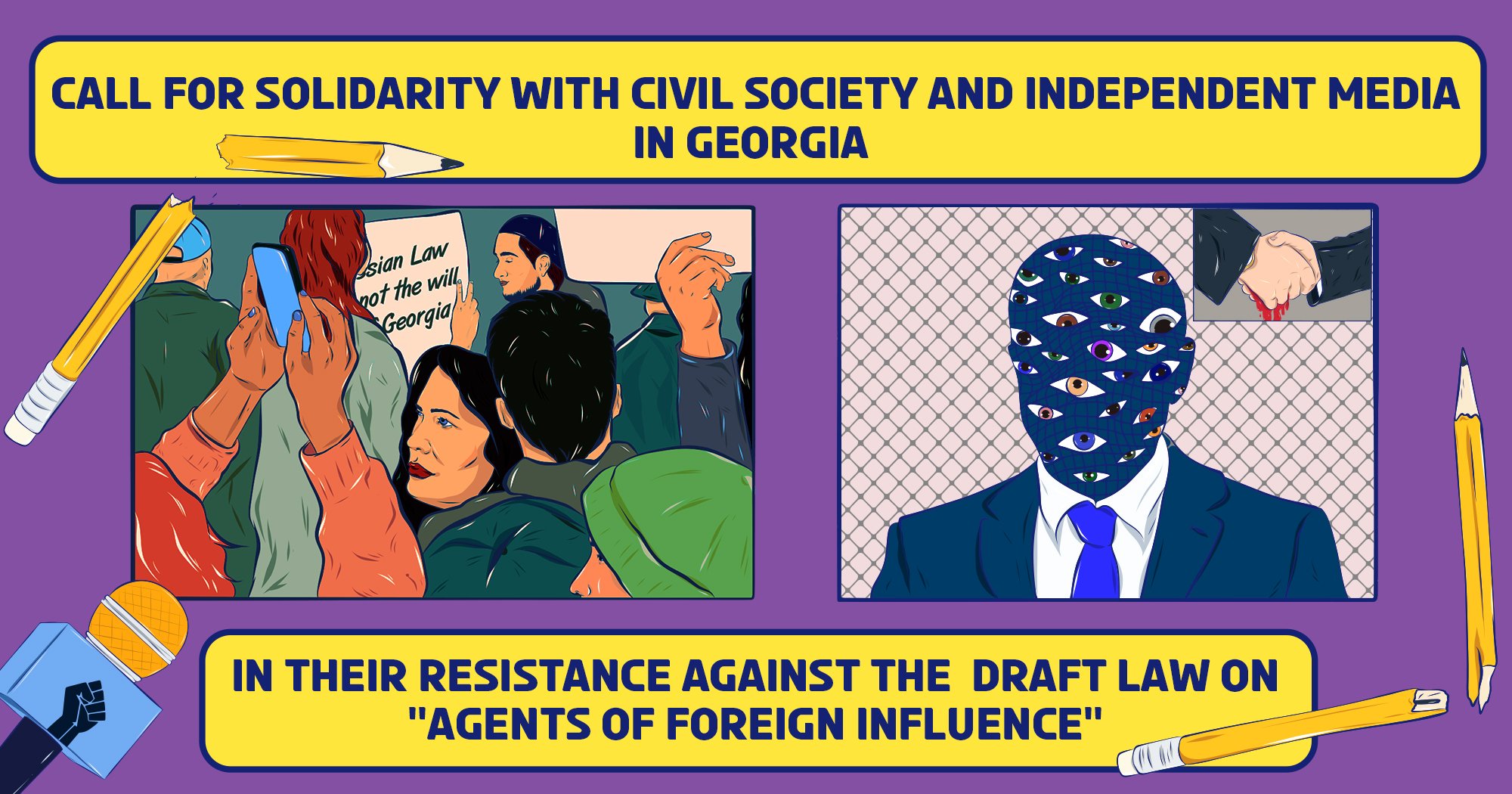 At this turning point for freedom and democracy, we call on international communities and the philanthropic ecosystem to show solidarity with civil society and independent media in Georgia in the resistance against the draft law on “Agents of Foreign Influence.”
